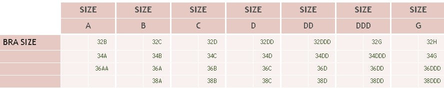 In order to find the right size of breast forms according to your band size and your chosen cup size, find your bra size on the chart.